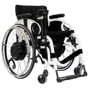 Transformez rapidement et aisément un fauteuil roulant manuel en fauteuil électrique.