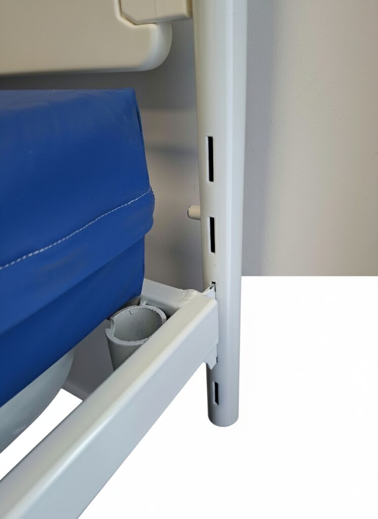 Version à réglages manuels avec dossier articulé (inclinaison par manivelle). Une solution fiable et accessible pour le confort en position semi-assise.